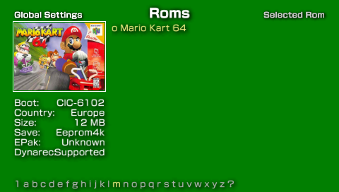 ③ms0:/PSP/GAME/DaedalusX64/RomsフォルダにN64のROMファイルを転送する。