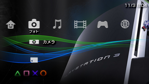 ③USB接続を解除して、XMBから[設定]→[テーマ設定]→[カスタムテーマ]を選択し、