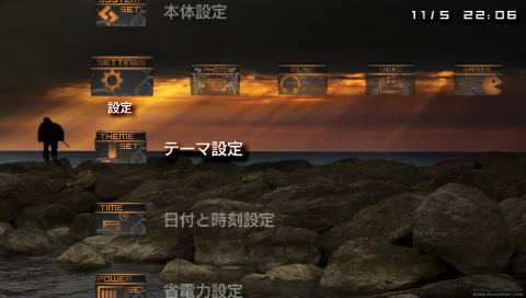 ⑦XMBに戻り、テーマ設定を選択しカスタムテーマを変更することができる。